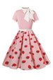 A Linie Blush Erdbeer-Print Kleid aus den 1950er Jahren mit kurzen Ärmeln