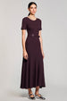 A Linie Dunkelrotes Langes Hochzeitsgastkleid mit Gürtel