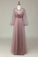 A Linie Grau Blau Pailletten Langärmeliges Brautjungfernkleid