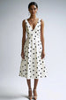 A Linie Midi V-Ausschnitt Weißes schwarzes Polka Dots Kleid
