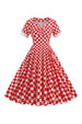 A Linie Rot kariertes Vintage Kleid aus den 1950er Jahren mit kurzen Ärmeln