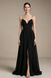 A Linie Schwarzes Abendkleid mit V-Ausschnitt und Schlitz