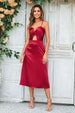 A Linie Spaghetti Träger Burgunder Tee Länge Brautjungfernkleid mit Aushöhlung
