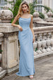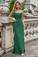 A Linie Spaghettiträger Matcha Langes Brautjungfernkleid mit Schnürung