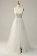 A-Linie Spaghettiträger Weißes langes Brautkleid mit Applikationen