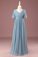 A-Linie Chiffon V-Ausschnitt bodenlanges kurze Ärmel Junior Brautjungfernkleid