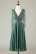 A Linie Eukalyptus V-Ausschnitt Perlen Langarm Brautjungfernkleid