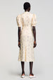 Aprikose A Linie Hochgeschlossenes Hochzeitsgastkleid mit Druck und Schleife