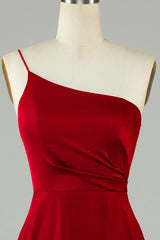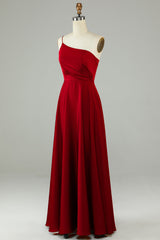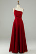 A-Linie Eine Schulter Burgunderrotes langes Brautjungfernkleid mit Rüschen