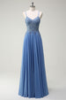 A-Linie Spaghettiträger Langes Ballkleid mit Falten und Applikationen