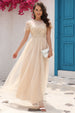 A-Linie Tüll Apricot Pailletten Ballkleid mit Applikationen
