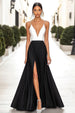 A Linie V-Ausschnitt Schwarzes Krawattenkleid mit Schlitz