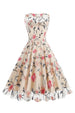 Aprikose Elegantes geblümtes besticktes ärmelloses Midi Vintage Kleid