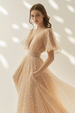 Verleihen Sie Ihrem Auftritt eine besondere Note mit diesem traumhaften Aprikosen-Kleid - ideal für Bräute, Brautjungfern oder Gäste, die auf festlichen Veranstaltungen glänzen möchten!