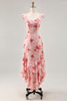 Bedrucktes Kleid für Hochzeitsgäste mit rosa Blume in A-Linie
