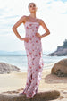 Blaue Blume Spaghettiträger Chiffon Langes Brautjungfernkleid mit Rüschen schlitz