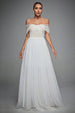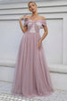 Blaues Tüll schulterfreies A-Linie Abendkleid