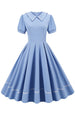 Blaues Kleid im Retro Stil der 1950er Jahre mit kurzen Ärmeln