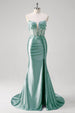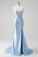 Blaues Meerjungfrau geblümtes trägerloses Korsett Langes Ballkleid mit Schlitz