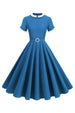 Blaues A-Linie Midikleid aus den 1950er Jahren mit Rundhalsausschnitt