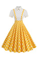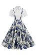 Blaues Peter-Pan-Kragen Polka Dots Träger Overall Vintage Kleid