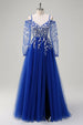 Blush A-Linie Kalte Schulter Korsett Appliziertes langes Ballkleid mit Schlitz