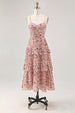 Blush Blumen A Linie Spaghettiträger Bedrucktes Gestuftes Hochzeitsgastkleid