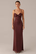 Braunes Etui Abendkleid mit Spaghettiträgern