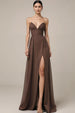 Braunes Satin Herzausschnitt Langes Abendkleid mit Schlitz