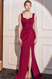 Burgunder Meerjungfrau Langes Ballkleid mit Schlitz
