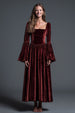 Burgunder A-Linie Abendkleid aus Samt mit quadratischem Ausschnitt und langen Ärmeln
