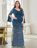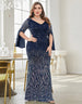 Burgundy Glitzer Meerjungfrauen Ballkleid mit V-Ausschnitt und Perlen