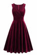 Burgundy kurzes A-Linie Vintage Kleid aus den 1950er Jahren mit V-Ausschnitt