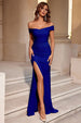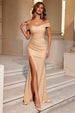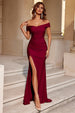 Burgunder Satin Meerjungfrauen Schulterfreies Langes Ballkleid mit Schlitz