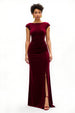 Burgunderrotes Langes Samt Festtags-Partykleid mit U-Boot-Ausschnitt und Schlitz