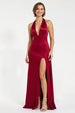 Burgunderrotes Langes Urlaubskleid mit V-Ausschnitt und Schlitz