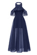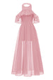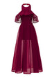 Burgunderrotes Neckholder Tüll Vintage Kleid mit Spitze