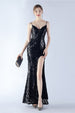 Burgunderrotes V-Ausschnitt Spaghettiträger Pailletten Kleid mit Schlitz