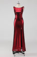 Burgundy Satin Abendkleid mit Rundhalsausschnitt und Schlitz