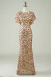 Champagner Pailletten Langes Ballkleid mit geschlitztem Rücken