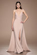 Champagner Maxi Abendkleid aus Satin mit Rüschen und Schlitz in A-Linie