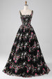 Charmantes A-Linie Korsett Ballkleid mit quadratischem Ausschnitt und Applikationen