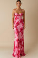 Chiffon Bedruckt Hellrosa Spaghettiträger Etui Langes Abendkleid
