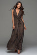 Dunkelbraunes Weißes Dot A Linie Langes Ballkleid mit Schärpe