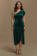 Dunkelgrünes Etui Midi Partykleid aus Samt mit Ärmeln