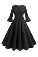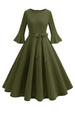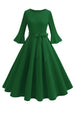 Dunkelgrünes langärmeliges Rundhalsausschnitt Vintage Kleid aus den 1950er Jahren Kleid