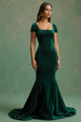 Dunkelgrünes Meerjungfrau Langes Festtagskleid mit quadratischem Ausschnitt