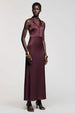 Dunkelrotes Satin Hochzeitsgastkleid aus Satin mit gekerbtem Revers