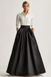 Dieser klassische A-Linien-Rock in elegantem Schwarz ist ein Must-Have für jeden zeitlosen Kleiderschrank! Der hochwertige Satinstoff verleiht dem Rock einen edlen Glanz, während die praktischen Seitentaschen Funktionalität mit Stil verbinden.