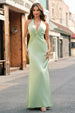 ZAPAKA Damen Staubiger Salbei Brautjungfernkleid Meerjungfrau Neckholder Langes Hochzeitsgastkleid